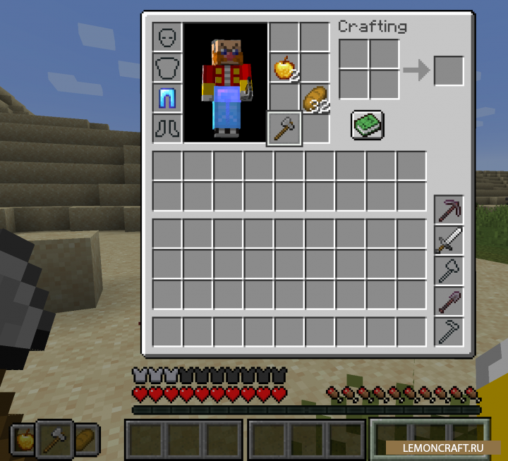 -Теперь у инструментов будут свои слоты, благодаря чему они не будут занимать хотбар, а нужный инструмент сам будет выбран во время рубки дерева/добывания руды.