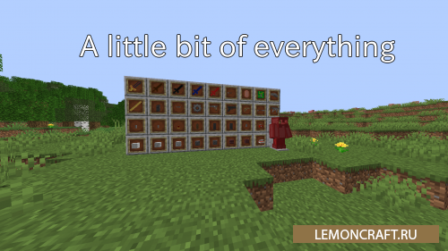 Мод на все понемногу A little bit of everything немного разнообразит игру добавив в нее несколько видов новых мечей, блоков для декорирования, огнестрельное оружие и патроны к нему и медикаменты.